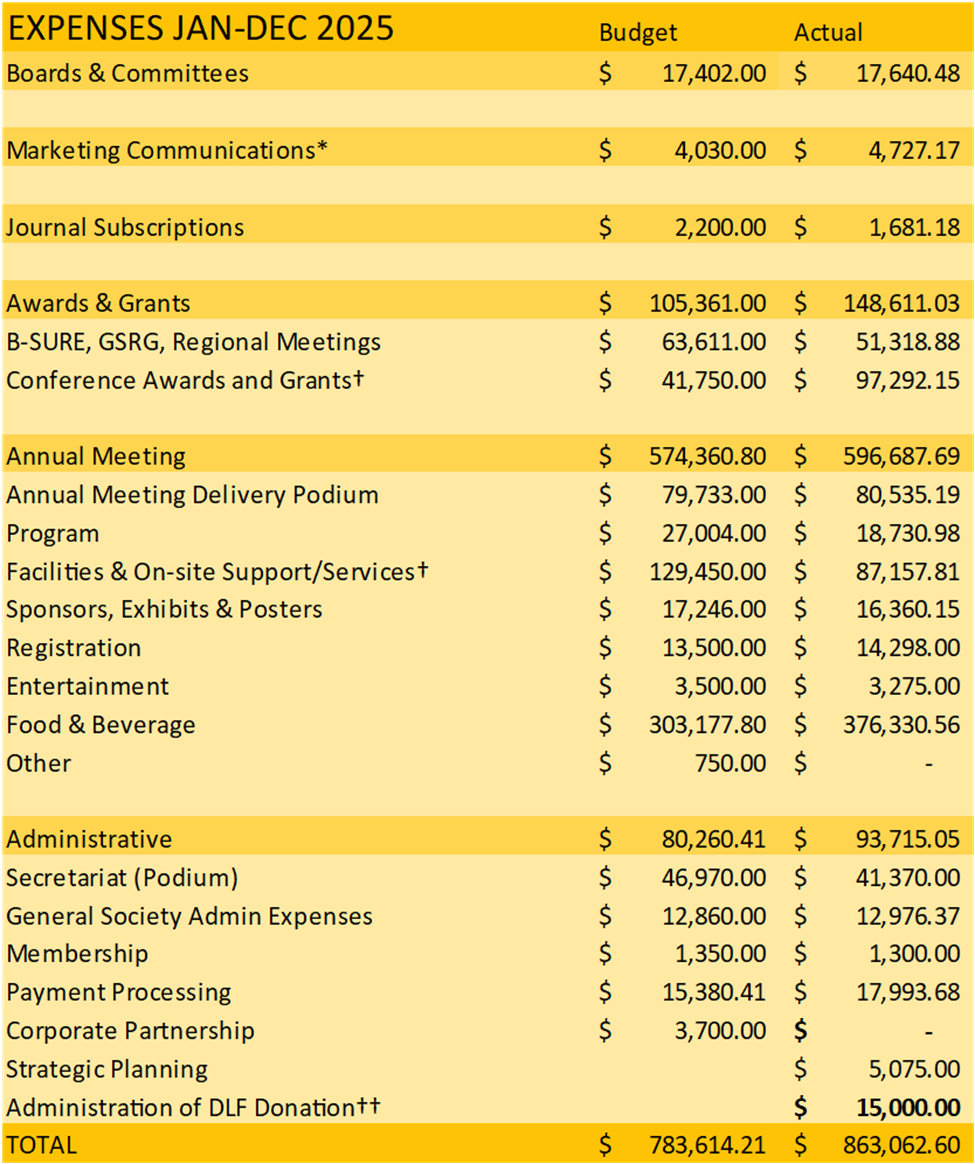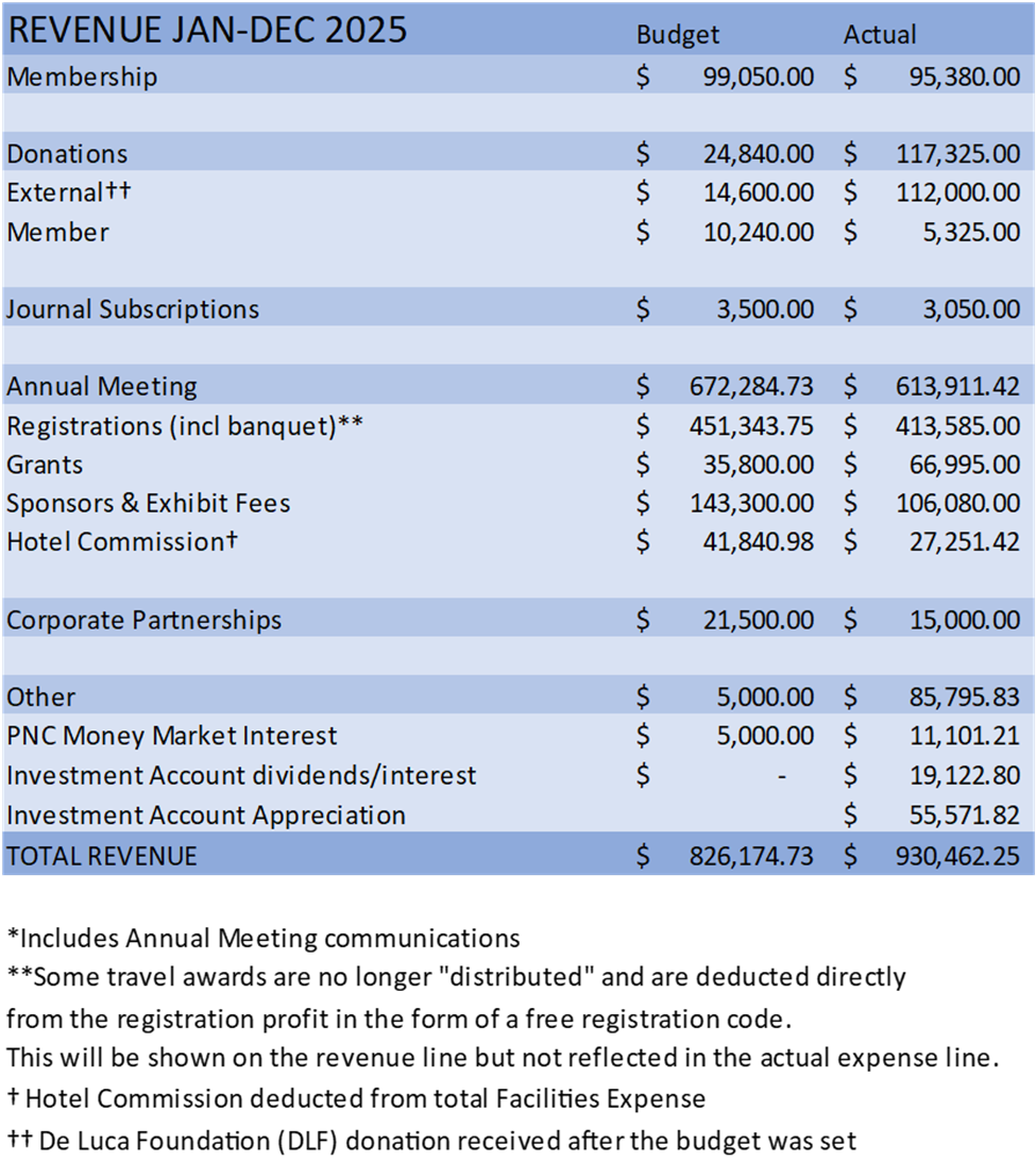 We move forward into 2026 with a strong financial outlook. Instead of our 2026 Annual Meeting, we are participating in the World Congress of Biomechanics (WCB) in Vancouver, Canada, in partnership with the Canadian Society of Biomechanics and European Society of Biomechanics. We ask that you remember to affiliate with ASB when you register for WCB as these will be an important source of revenue for ASB in 2026. We also encourage you to renew your annual ASB membership to help continue support for many of our annual programs that directly benefit members (e.g., regional conferences, society awards, travel awards, etc.). We will continue to work with the Development Committee to administer the De Luca Foundation gift and encourage a culture of giving among our society membership. We have already started off 2026 by distributing six Regional Meeting Awards! We look forward to continuing to support our membership in the months ahead.