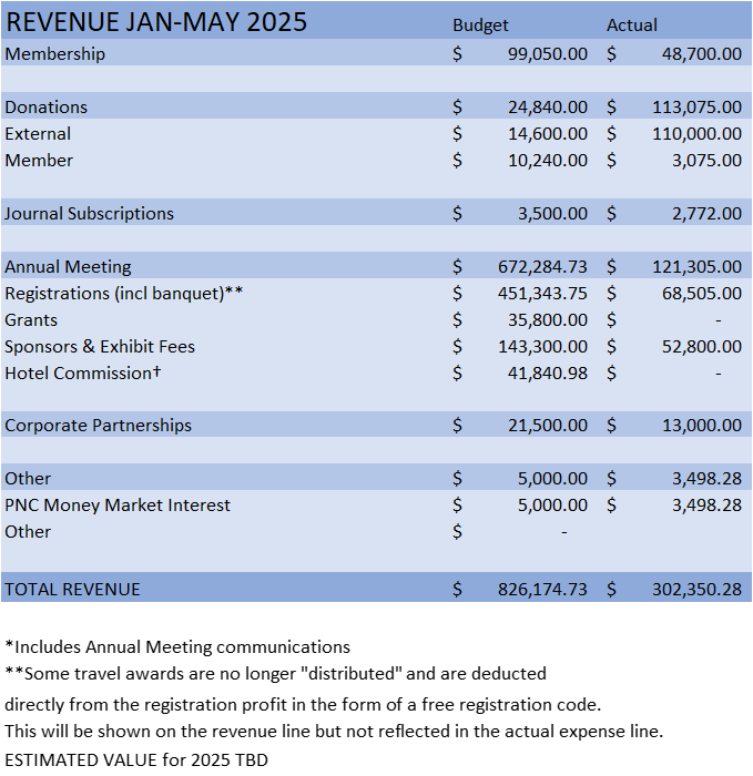 The next couple of months will be a busy time with the distribution of award funds and the transition of the Treasurer-Elect to Treasurer. We look forward to seeing everyone in Pittsburgh soon!